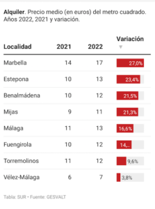 Estepona: Hausse de 23,4% en un an (prix moyen du m2)